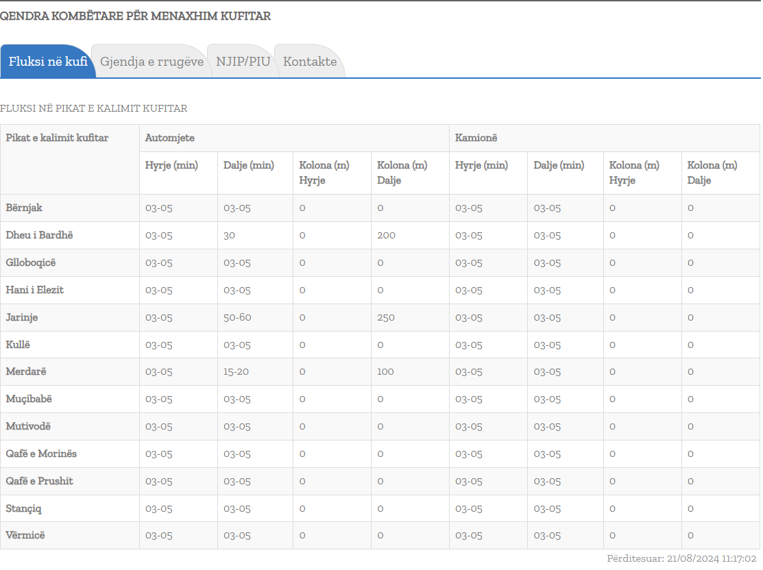 Qendra Kombëtare për Menaxhim Kufitar bënë të ditur se pritjet më të gjata janë në Jarinjë ku mërgimtarët po presin deri një orë për të dal nga vendi.