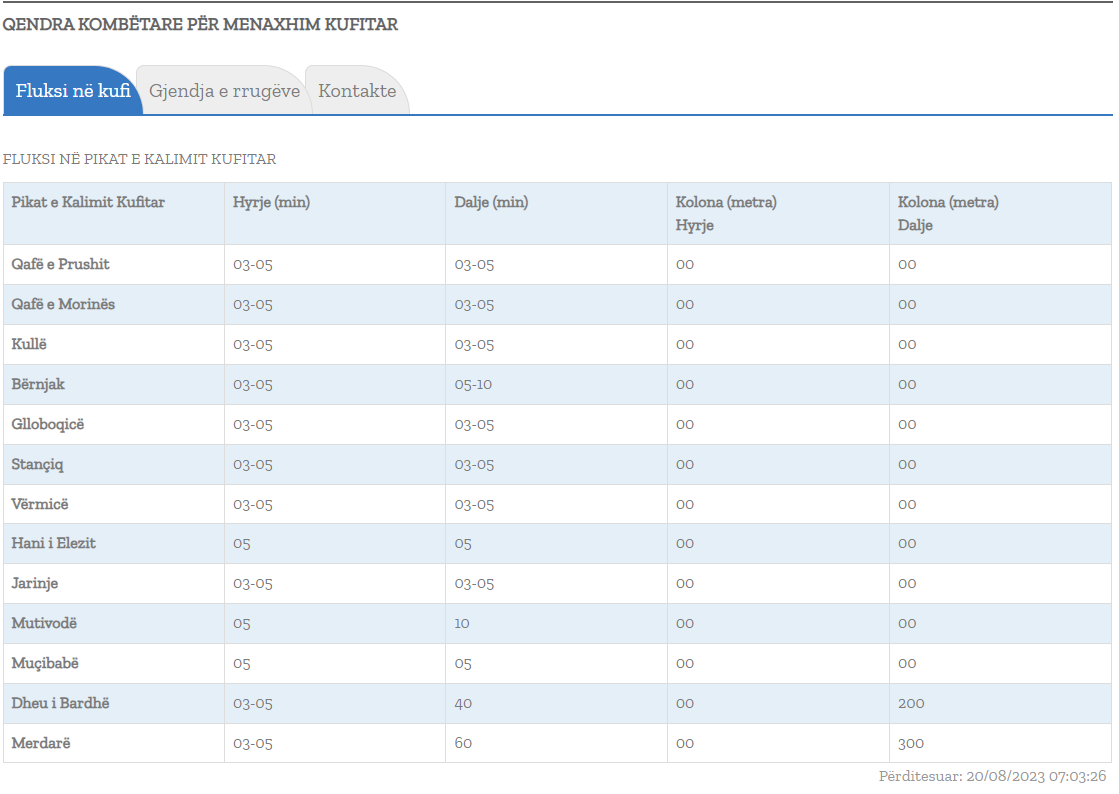 Qendra Kombëtare për Menaxhim Kufitar njofton se pika kufitare më e ngarkuar është në Merdarë, shkruan Arbresh.info.
