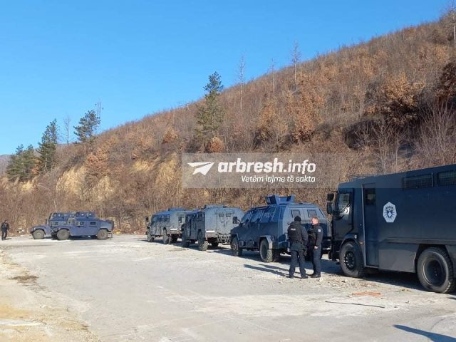 Njësia Speciale e Policisë së Kosovës, janë vendosur në hyrje të Zveçanit, rrugës për pikën kufitare ne Jarinë.