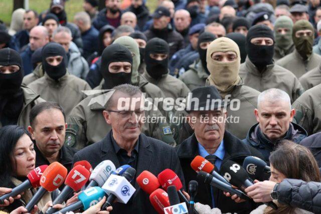 Njësiti Special Intervenues (NJSI) dhe Sindikata e Policisë së Kosovës kanë nisur protestën para ndërtesës së Qeverisë së Kosovës.