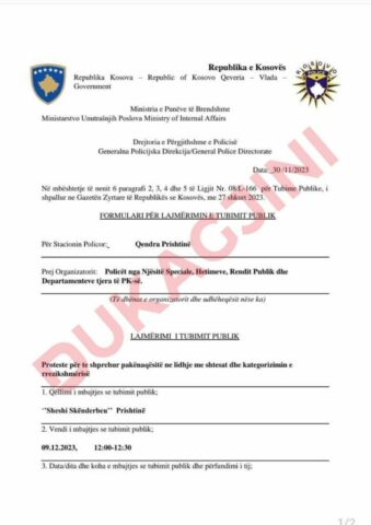Policët nga Njësitë Speciale, Hetimeve, Rendit Publik dhe departamenteve të tjera të PK-së kanë paralajmëruar protestë më 9 dhjetor.