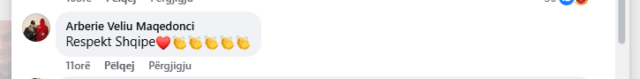 Përmes një komenti në Facebook, Veliu-Maqedonci ka duartrokitur qëndrimin e Selimi-Mehmetit, duke shkruar shkurtimisht: “Respekt, Shqipe”, të shoqëruar me një emoji duartrokitjeje.