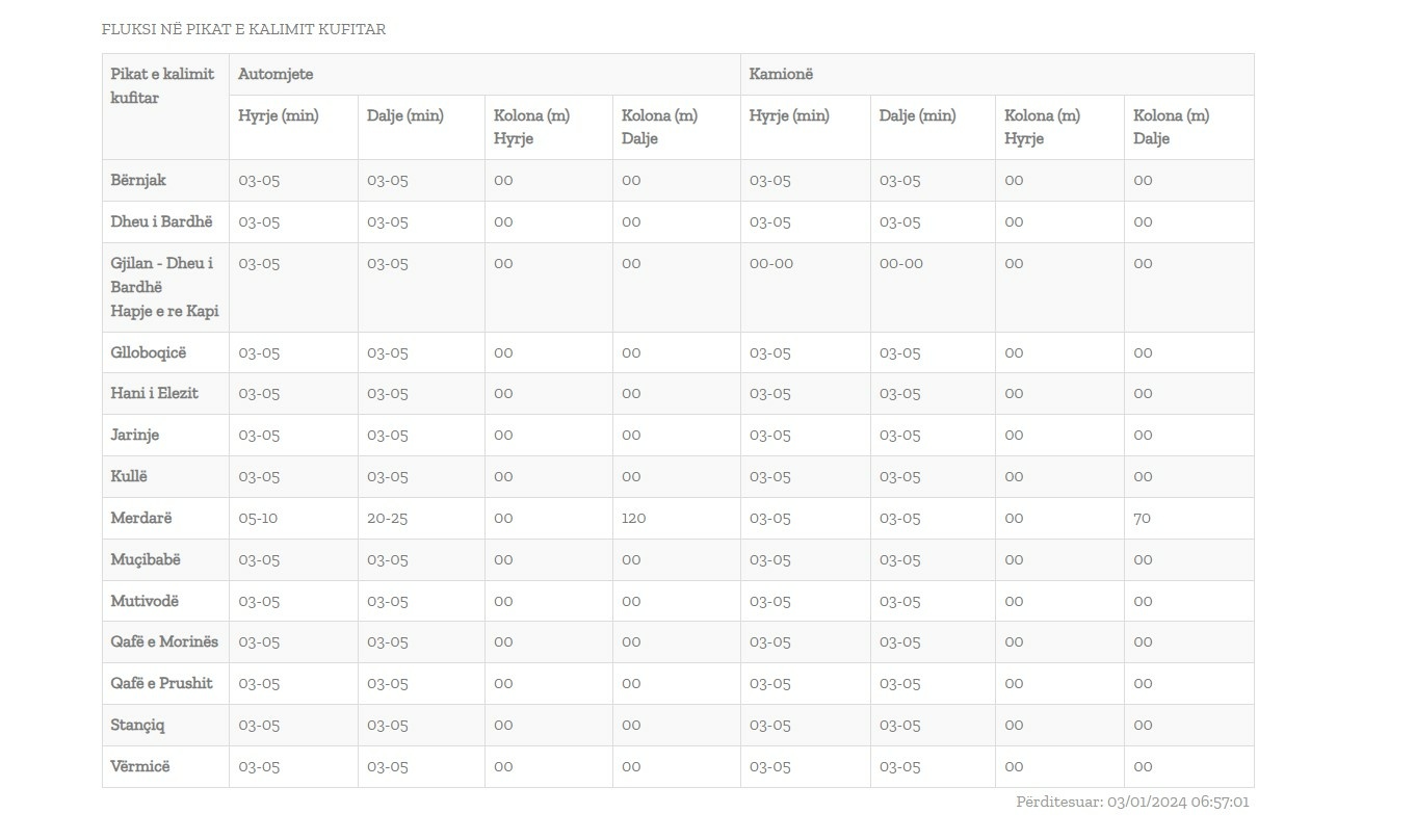 Qendra Kombëtare e Menaxhimit Kufitar bën të ditur se nuk ka kolona dhe pritje të gjata në pikë-kalimet kufitare.
