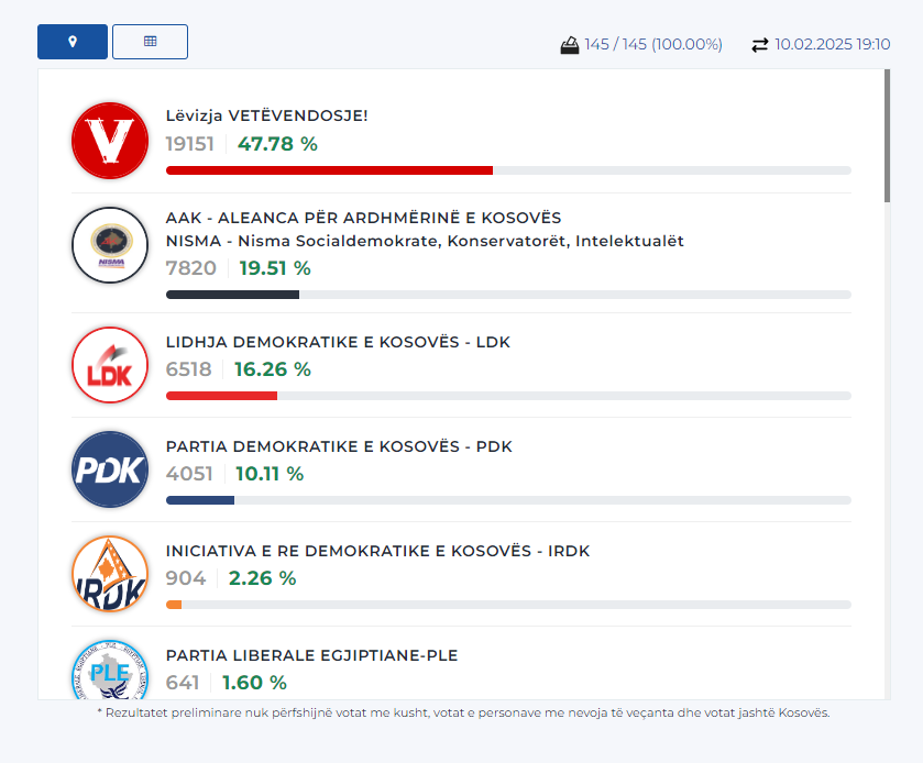 LDK me 16.26 përqind dhe PDK me 10.11 përqind./Arbresh.info/