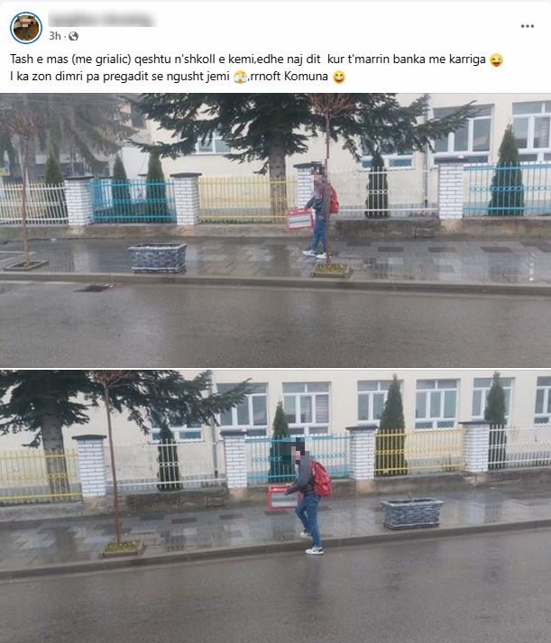 “Tash e mas (me grialic) qeshtu n’shkoll e kemi,edhe naj dit kur t’marrin banka me karriga, i ka zon dimri pa pregadit se ngusht jemi ,rrnoft Komuna ?”, ka shkruar ai në Facebook.