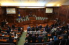Kuvendi mblidhet në seancë plenare, deputetët mbajnë një min...