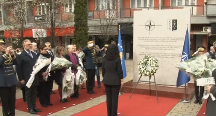 Në 25 vjetorin e bombardimeve të NATO-s, presidentja e vendit, Vjosa Osmani ka bërë homazhe para memorialit të ushtarëve të rënë të NATO-s për lirinë e Kosovës.