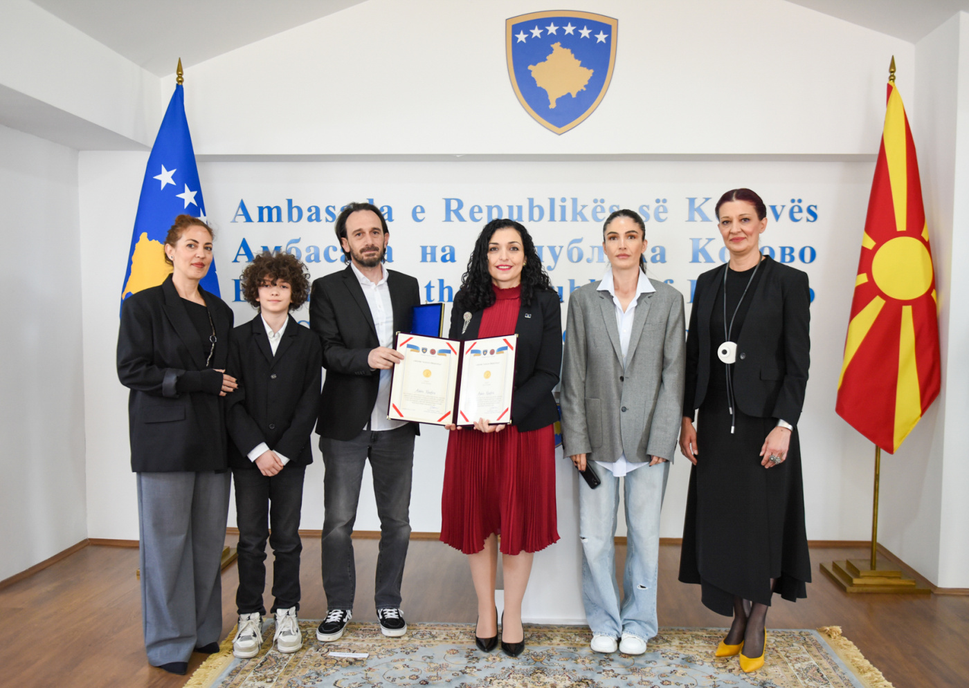 Presidentja e Republikës së Kosovës, Vjosa Osmani Sadriu, ka dekoruar sot post mortem me Urdhrin “Hasan Prishtina”, ideologun, politikanin, filozofin dhe liderin Arbën Xhaferi, në një ceremoni të organizuar në Ambasadën e Kosovës në Shkup, ku të pranishëm ishin edhe disa nga pjesëtarët e familjes së tij.
