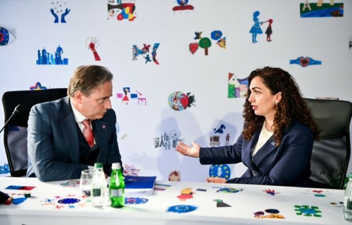 Presidentja e vendit Vjosa Osmani, gjatë qëndrimit në Tiranë, ka takuar kryeministrin e ri belg, Bart De Wever, me të cilin ka diskutuar për situatën e sigurisë në rajon, si dhe nevojën për heqjen e masave të padrejta kundër qytetarëve të Kosovës.