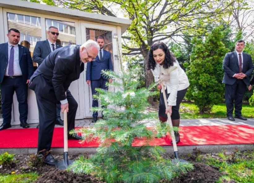 Presidentja Vjosa Osmani së bashku me homologun e saj letonez, Egils Levits, kanë mbjellë drurin e miqësië.
