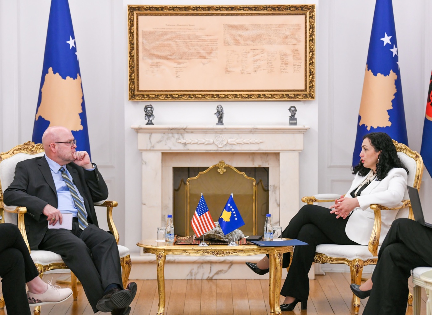 Presidentja e Republikës së Kosovës, Vjosa Osmani priti sot në takim të rregullt Ambasadorin e SHBA-ve, Jeffrey Hovenier.