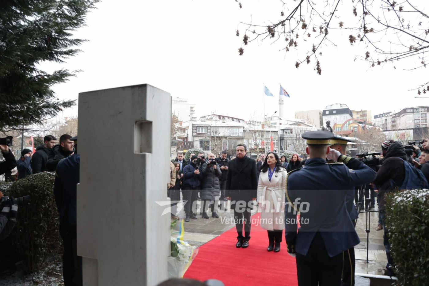 Pas mbledhjes së qeverisë dhe ngritjes së flamurit, presidentja e vendit, Vjosa Osmani dhe kryeministri Albin Kurti, bënë homazhe edhe te Memoriali për të Zhdukurit, shkruan Arbresh.info.