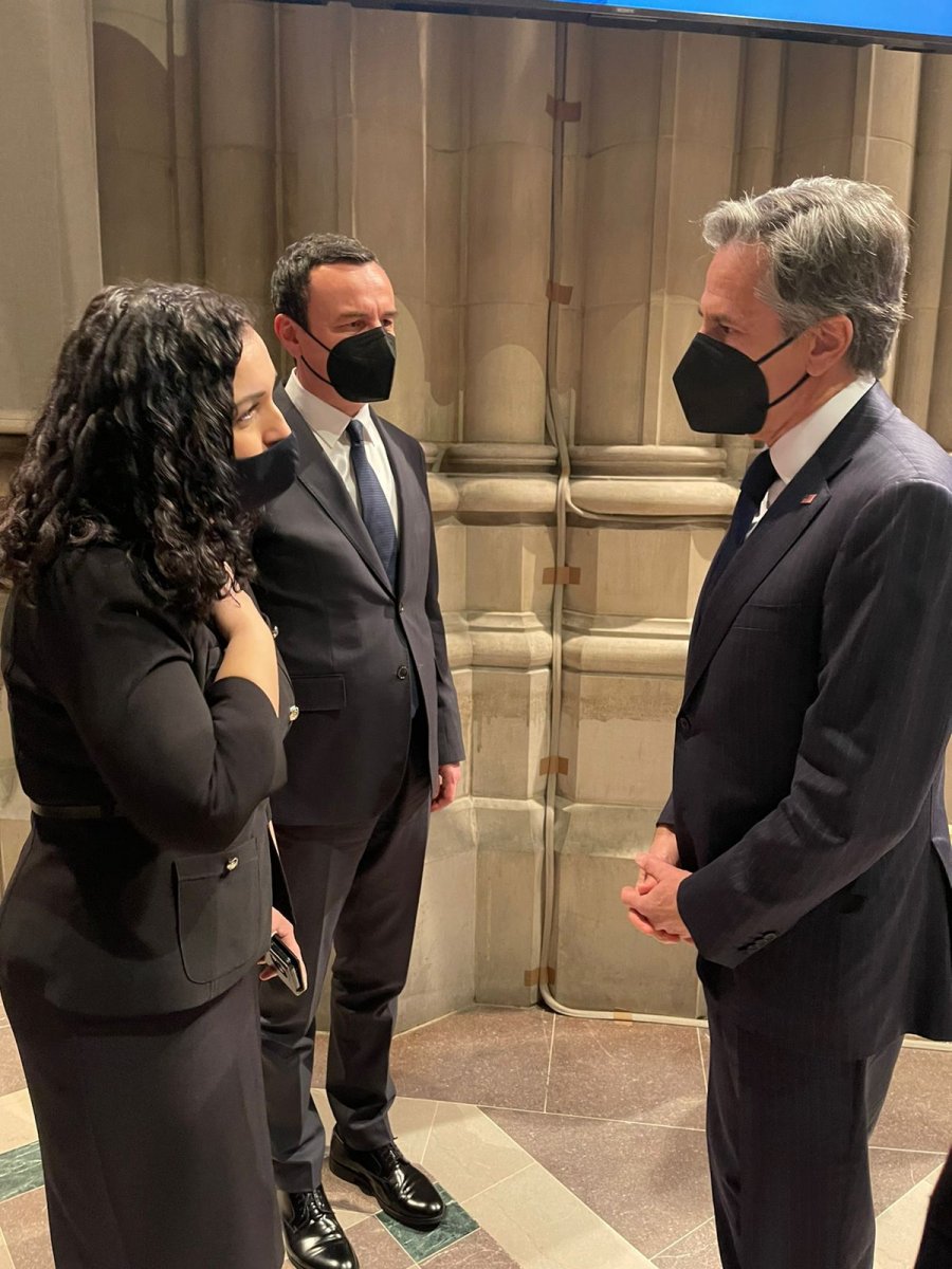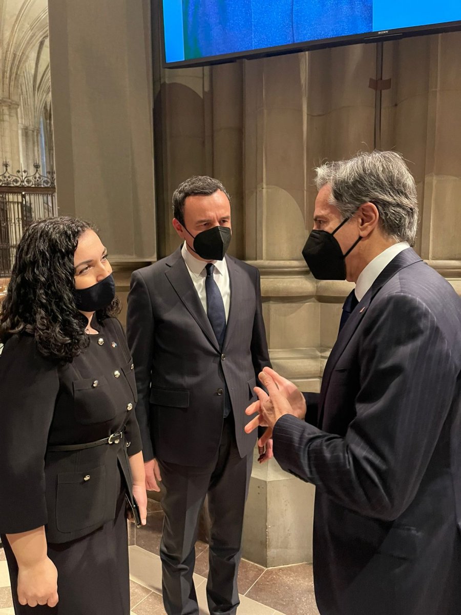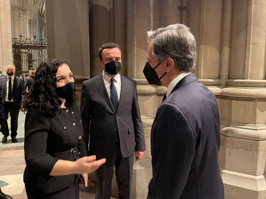 Osmani dhe Kurti janë takuar me Blinken gjatë ceremonisë së varrimit të ish-Sekretares, Madeleine Albright.