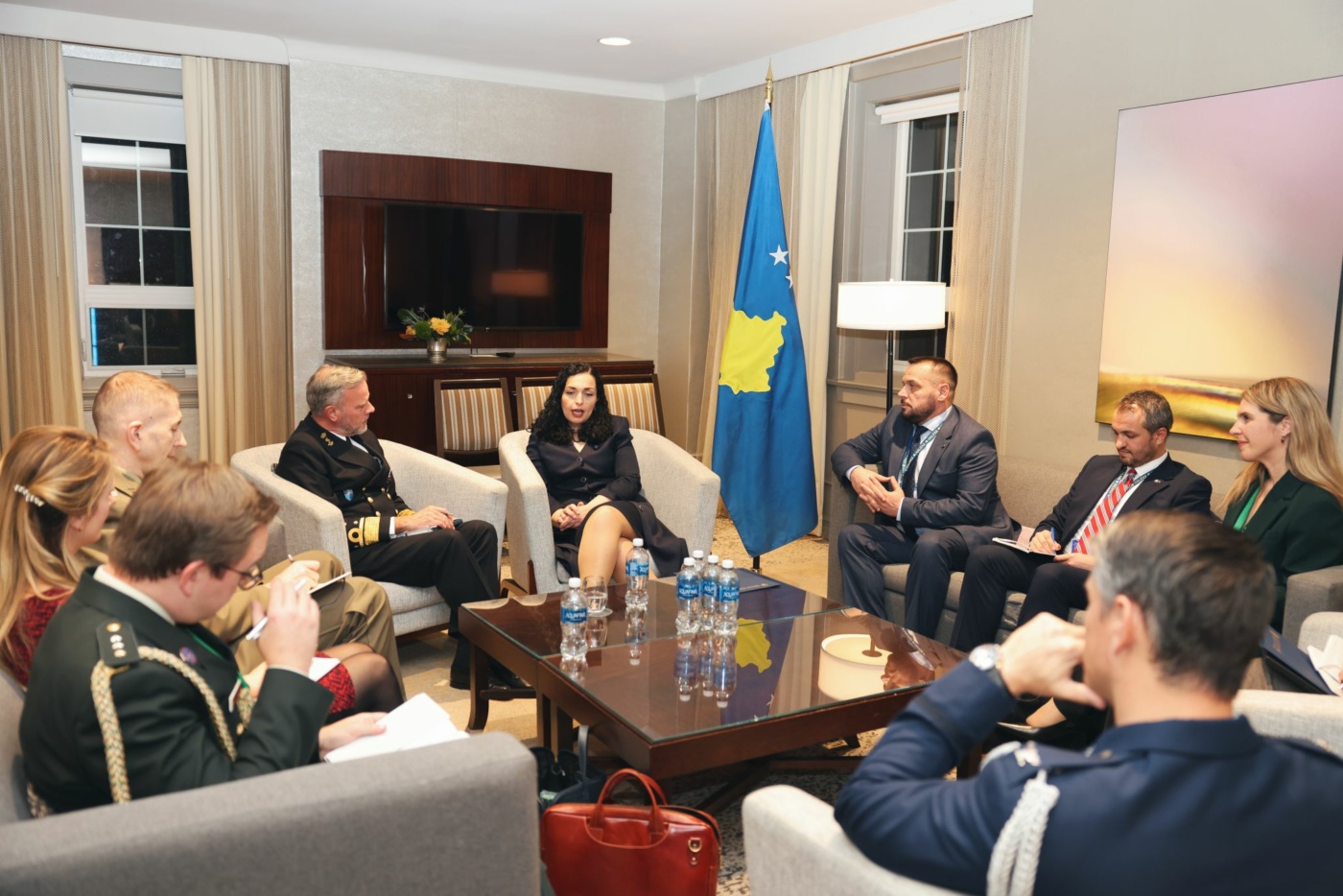 “Në kuadër të Forumit Ndërkombëtar të Sigurisë në Halifax, së bashku me Presidenten Osmani, takuam Kryetarin e Komitetit Ushtarak të NATO-s, Admiralin Bob Bauer me të cilin diskutuam rreth situatës së sigurisë dhe përkushtimit të Republikës së Kosovës në përmbushje të detyrave tona për anëtarësim në NATO”, ka shkruar Maqedonci.