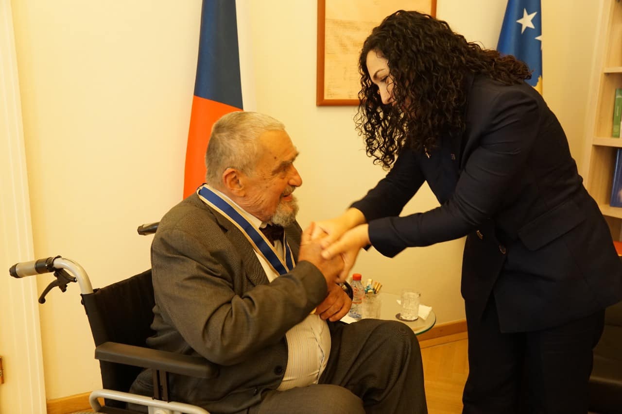 Presidentja e Republikës së Kosovës Vjosa Osmani- Sadriu, gjatë vizitës së saj në Çeki nderoi politikanin Václav Havel, me Medaljen Precidenciale të Meritave për kondributin e dhënë për Kosovës.