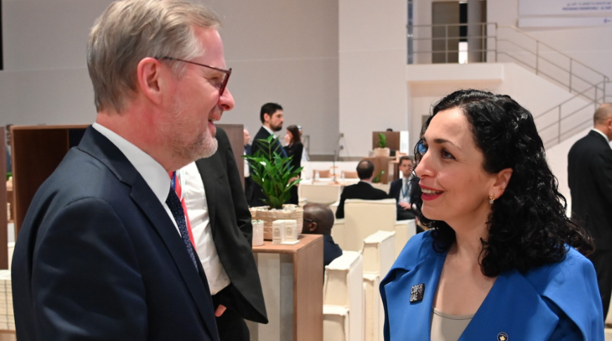 Presidentja e Republikës së Kosovës, Vjosa Osmani u takua me kryeministrin e Çekisë, Petr Fiala, në COP28 në Dubai, të cilin e ka falënderuar për mbështetjen e Çekisë dhe i ka shprehur vendosmërinë e Kosovës për të vazhduar forcimin e lidhjeve tona dypalëshe.