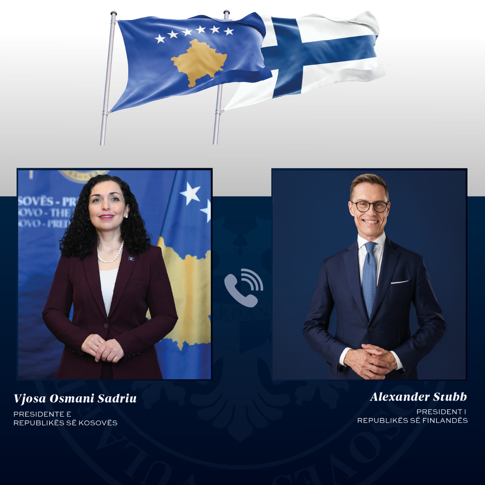 Presidentja e Kosovës, Vjosa Osmani, ka njoftuar se ka zhvilluar një bisedë telefonike me presidentin e Finlandës, Alexander Stubb.