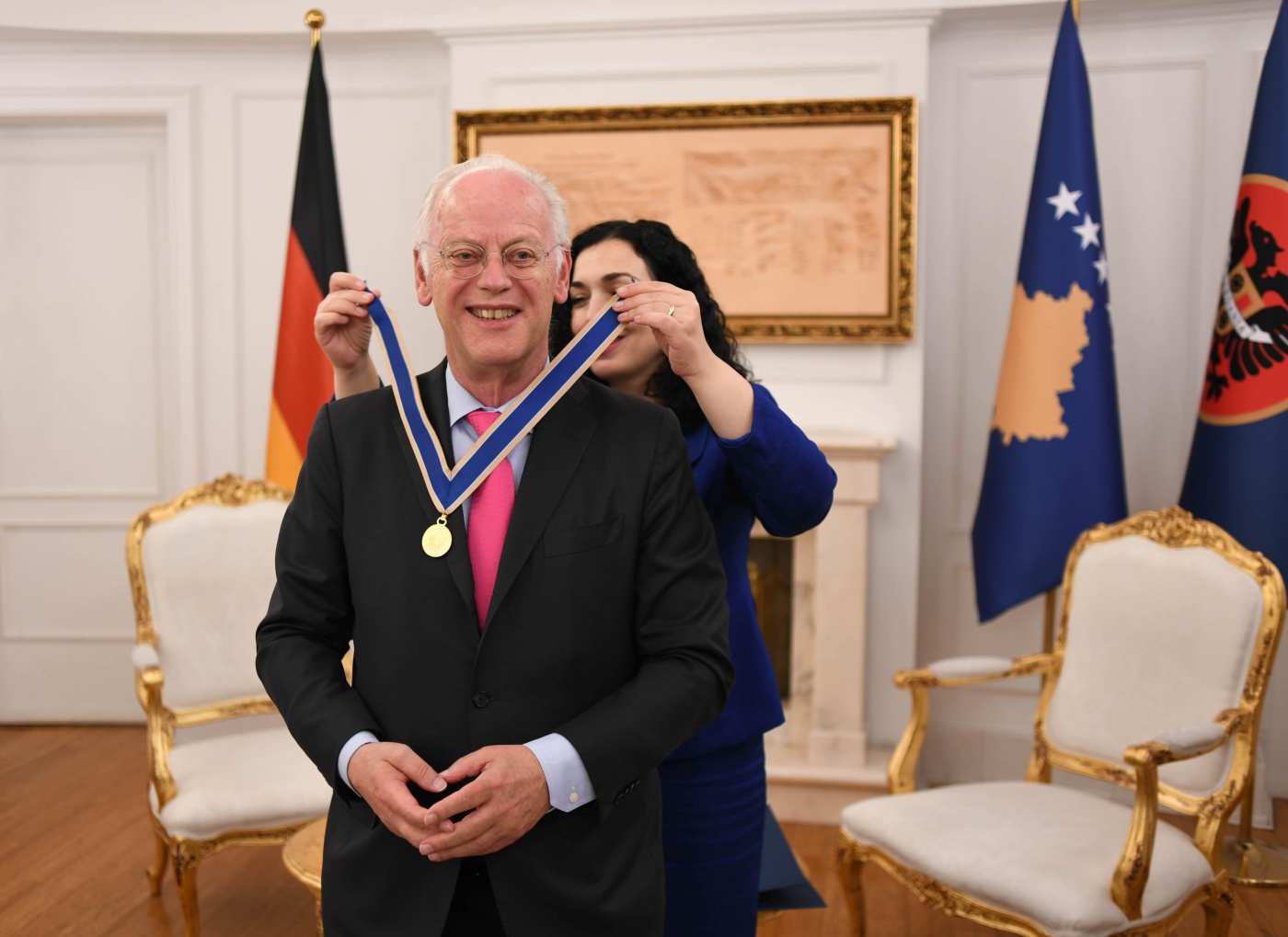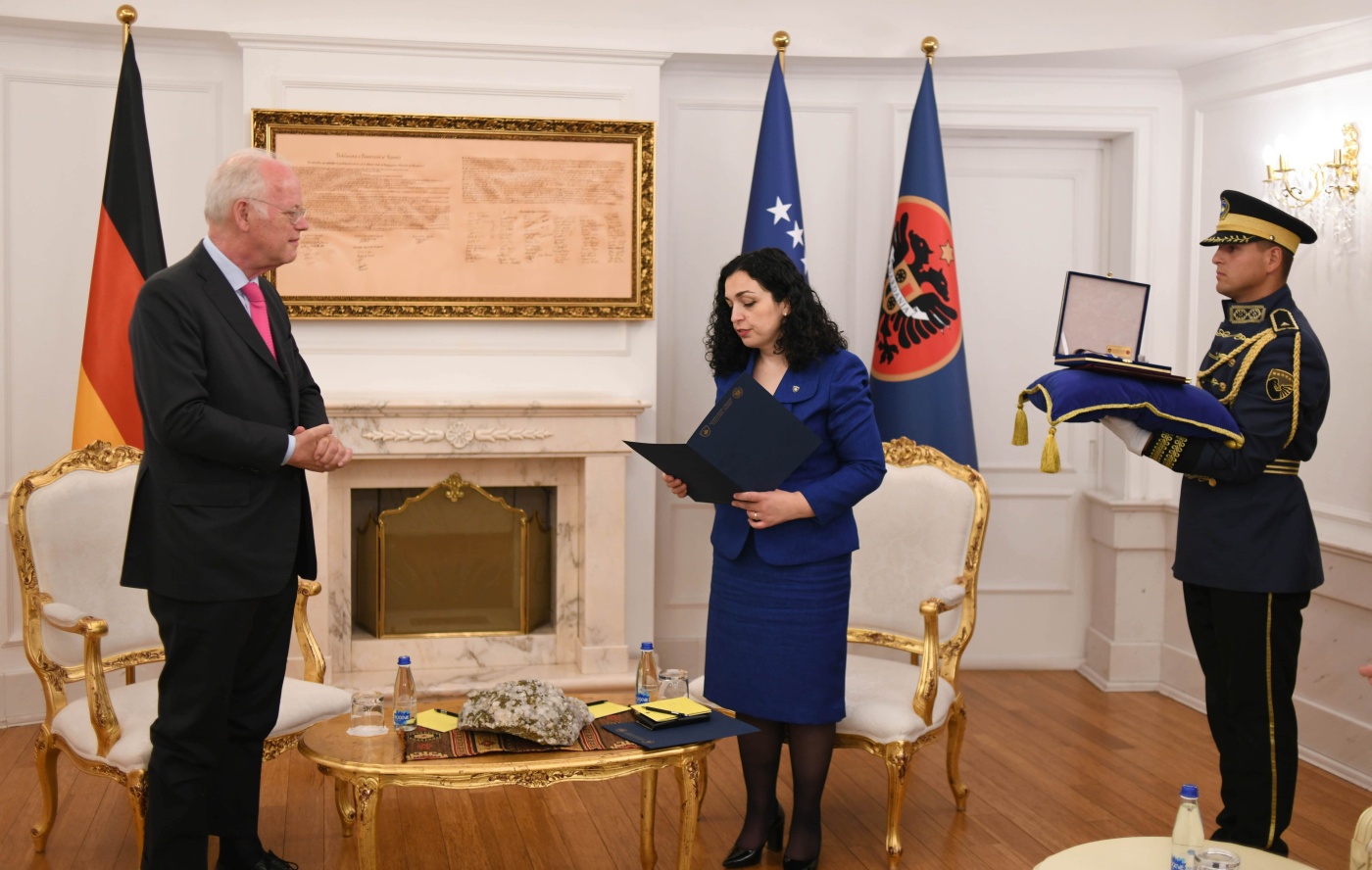 Presidentja Osmani ka theksuar se dekorimi i ish-ministrit gjerman përkon me 23 vjetorin e çlirimit të Kosovës, për të cilën ai ishte meritor.