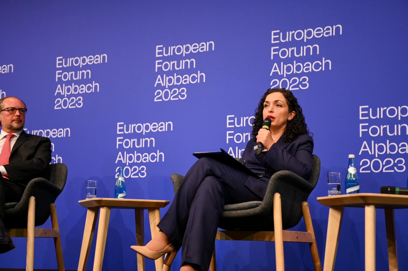 “Kjo ështe tema e sivjetme e Forumit Evropian Alpbach, ku kisha nderin të diskutoj në panelin kryesor, së bashku më përfaqësues të shteteve të tjera. Zgjerimi i Bashkimit Evropian me shtetet demokratike të Ballkanit Perëndimor, mbrojtja e parimeve dhe vlerave të të drejtave të njeriut, sundimit të ligjit dhe demokracisë, si dhe unifikimi në luftimin e autokracive e tiranive, janë tiparet që e bëjnë një Evropë të guximshme”, ka shkruar Osmani në Facebook.