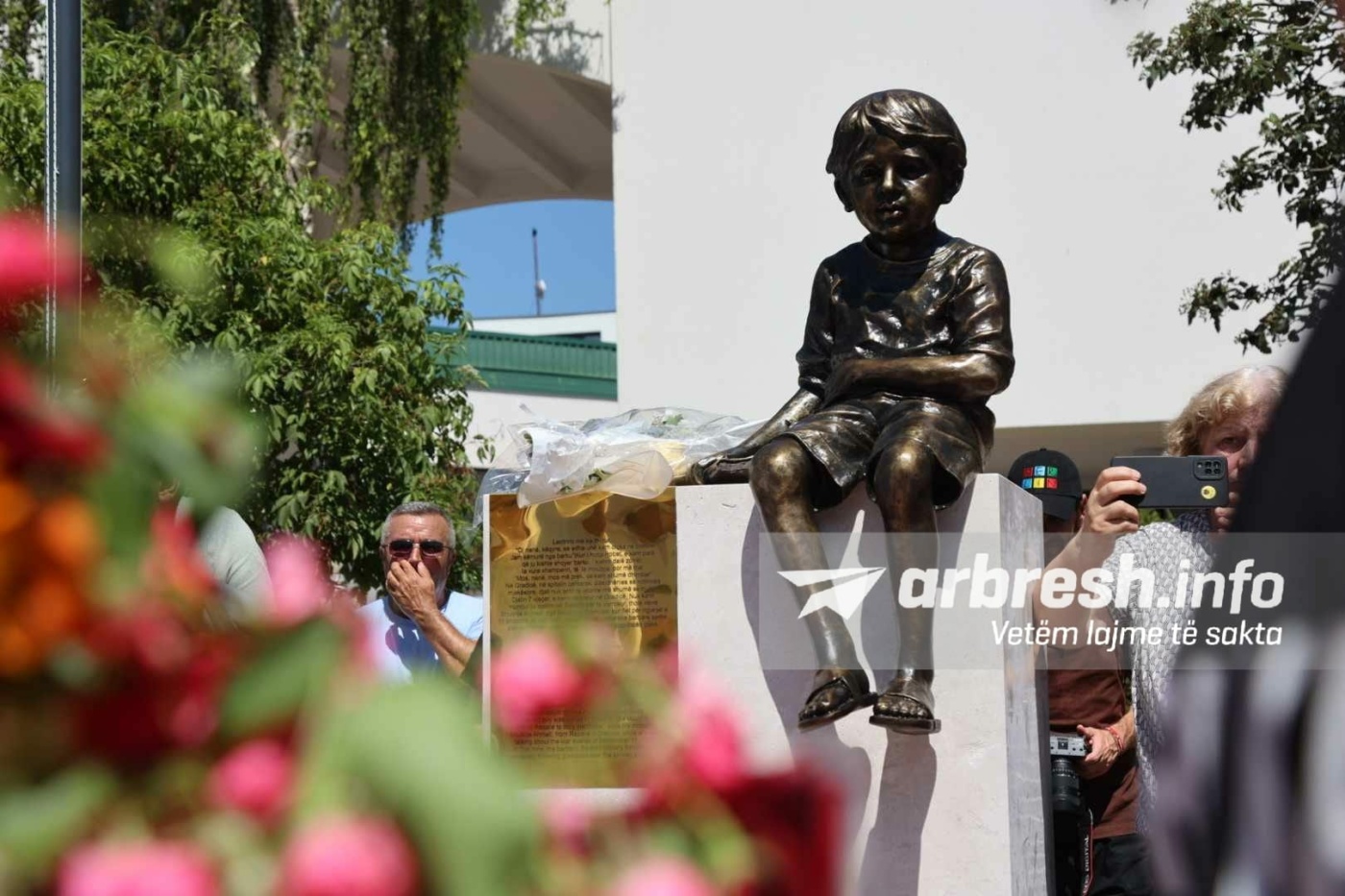 “Leotrim Ahmeti ishte vetëm shtatë vjeç kur u vra nga forcat e Millosheviqit në vitin 1998. Ai është një nga 1133 fëmijët e pafajshëm të vrarë gjatë luftës së fundit në Kosovë. Sot për nder të tij në Skenderaj është ngritur shtatorja. Ne qëndrojmë me familjen e tij – dhe çdo familje të plagosur nga humbja e fëmijëve të tyre të çmuar. Jetët e tyre ishin çmimi i lartë i lirisë sonë”, ka shkruar Osmani./Arbresh.info/