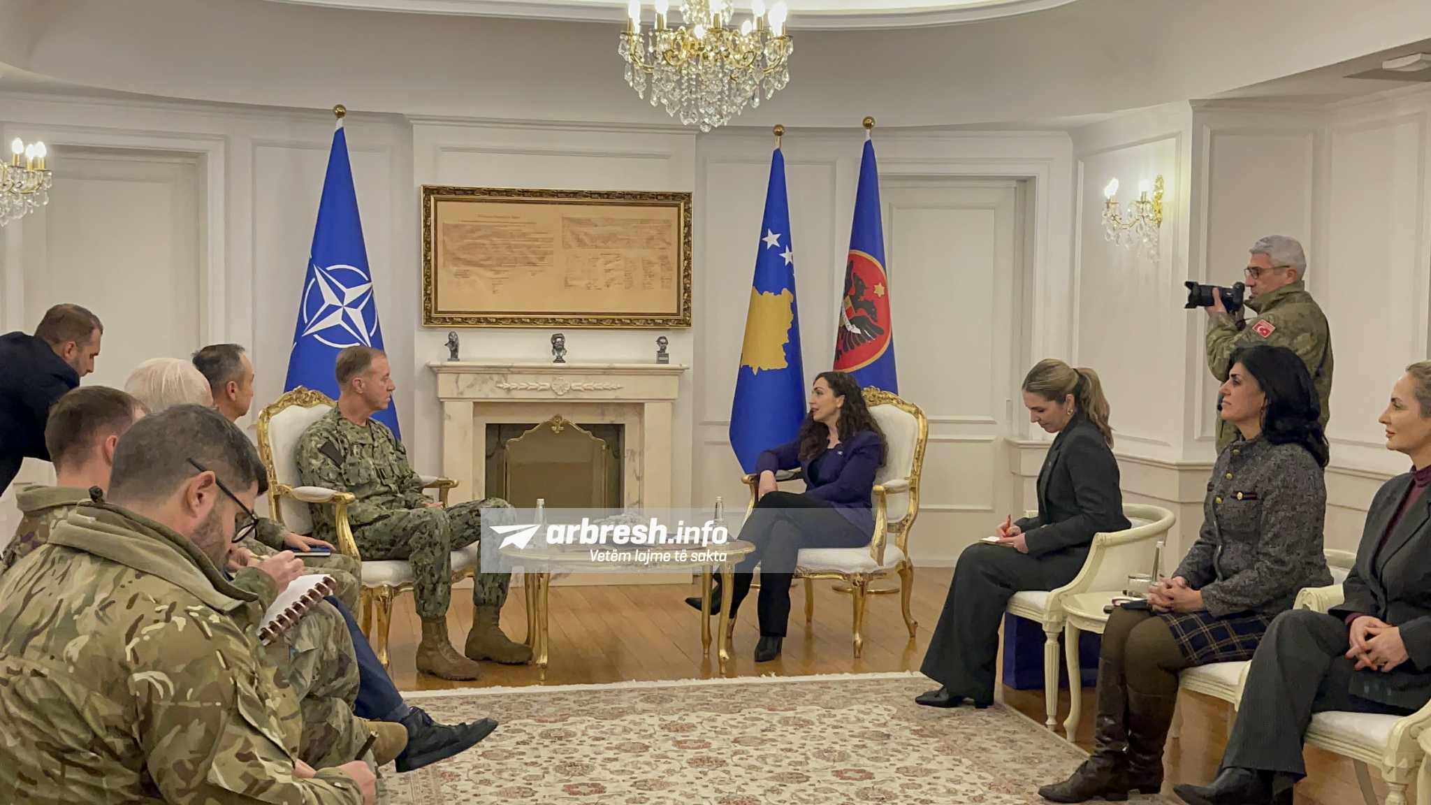 Gjatë takimit, Presidentja Osmani ritheksoi mirënjohjen e Republikës së Kosovës ndaj NATO-s dhe Shteteve të Bashkuara të Amerikës për rolin vendimtar dhe të pazëvendësueshëm që kanë luajtur dhe vazhdojnë të luajnë në garantimin e paqes, sigurisë dhe stabilitetit në Kosovë që nga viti 1999. Në këtë kontekst, Presidentja shprehu vlerësim të veçantë për misionin e KFOR-it, si forcë e besueshme parandaluese dhe garantuese e sigurisë për të gjithë qytetarët e Republikës së Kosovës, pa asnjë dallim.