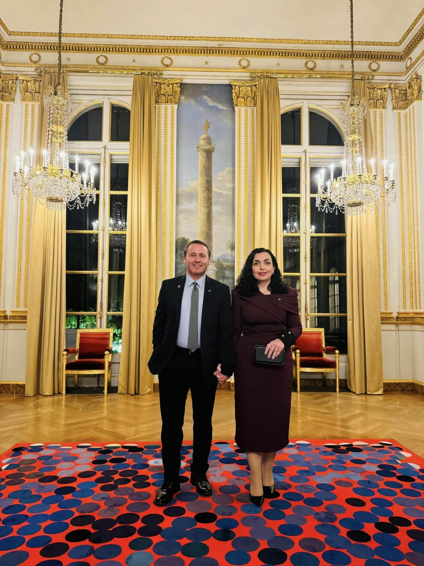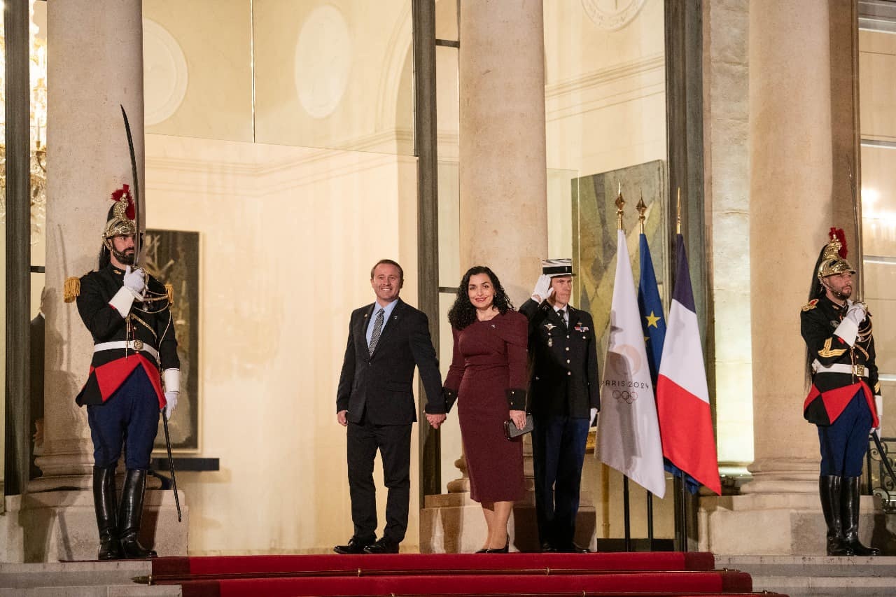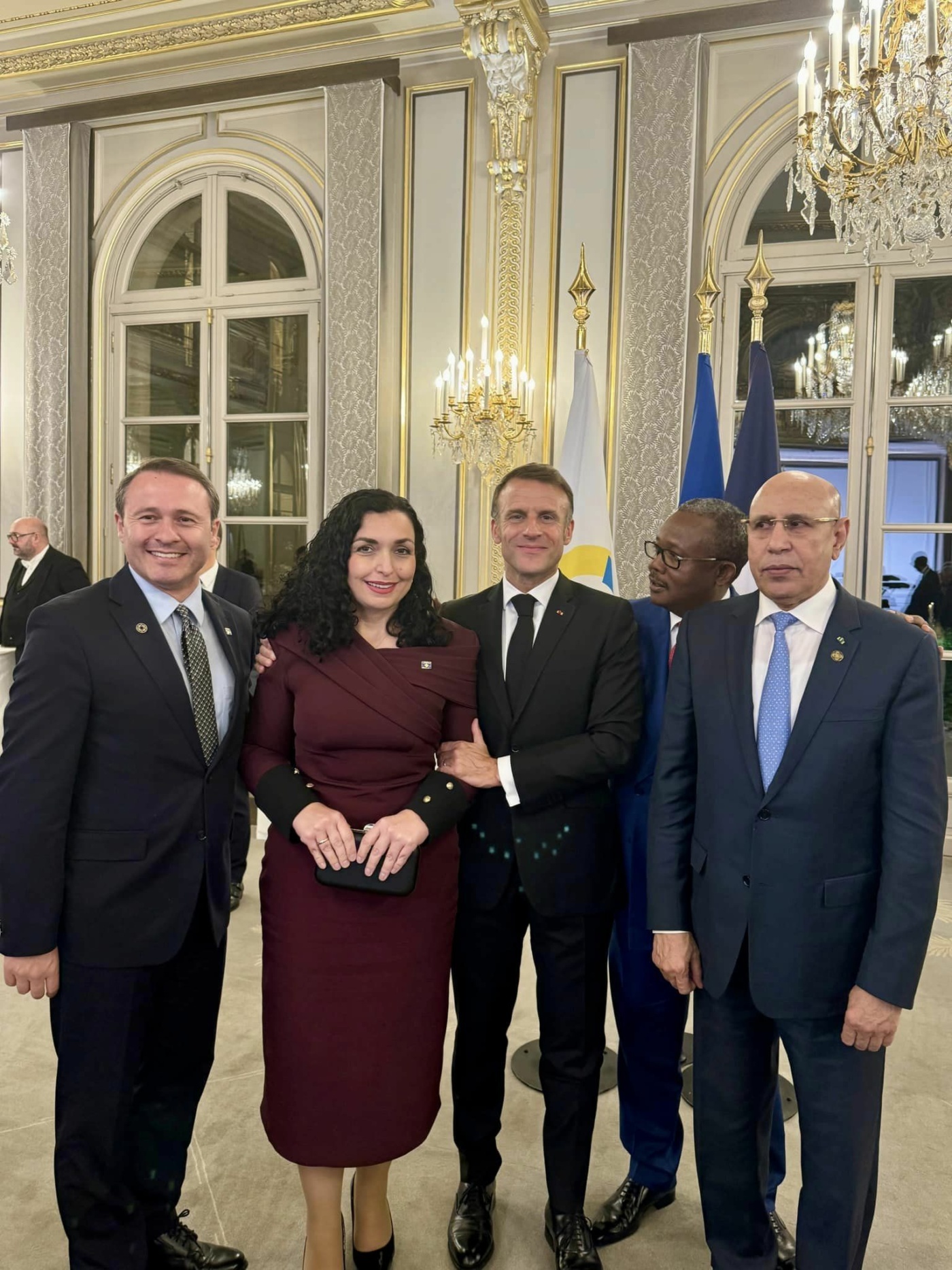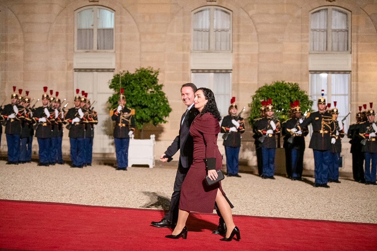 “Mbrëmë në Pallatin Élysée në Paris, në darkën e organizuar nga Presidenti Emmanuel Macron për krerët e shteteve të Frankofonisë”, ka shkruar Osmani krahas imazheve./Arbresh.info/