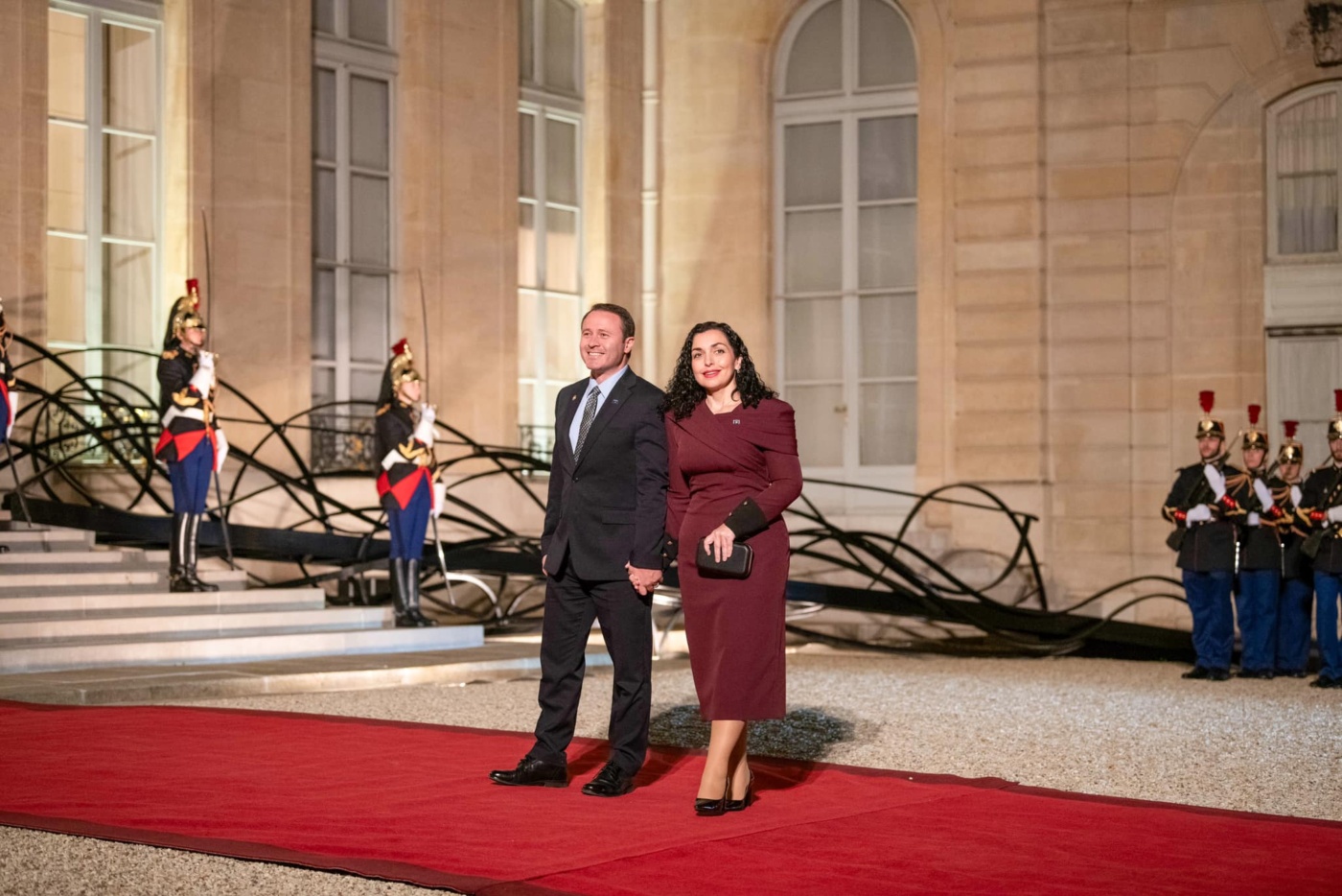 “Mbrëmë në Pallatin Élysée në Paris, në darkën e organizuar nga Presidenti Emmanuel Macron për krerët e shteteve të Frankofonisë”, ka shkruar Osmani krahas imazheve./Arbresh.info/