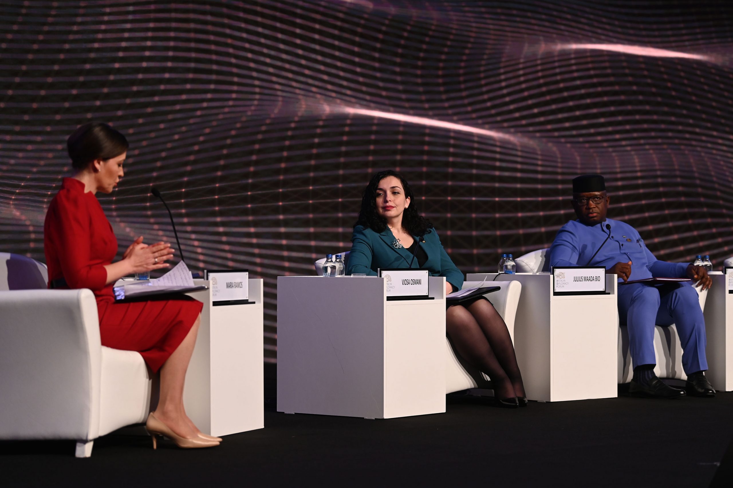 Presidentja e Republikës së Kosovës, Vjosa Osmani në kuadër të punimeve të Forumit Diplomatik të Antalisë, sot ka marrë pjesë në panelin e liderëve ku u diskutua për temën “Rrugët rajonale dhe globale drejt paqes dhe prosperitetit”.