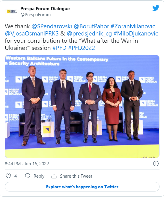 Në debatin e organizuar me temë “Çka pas luftës në Ukrainë”, liderët e vendeve pjesëmarrëse u shprehën pro dhënies së statusit të shtetit kandidat Ukrainës dhe Moldavisë, por edhe Bosnjës, si dhe liberalizimin e vizave për Kosovën, dhe njohjen e ndërsjellët të Kosovës dhe Serbisë.