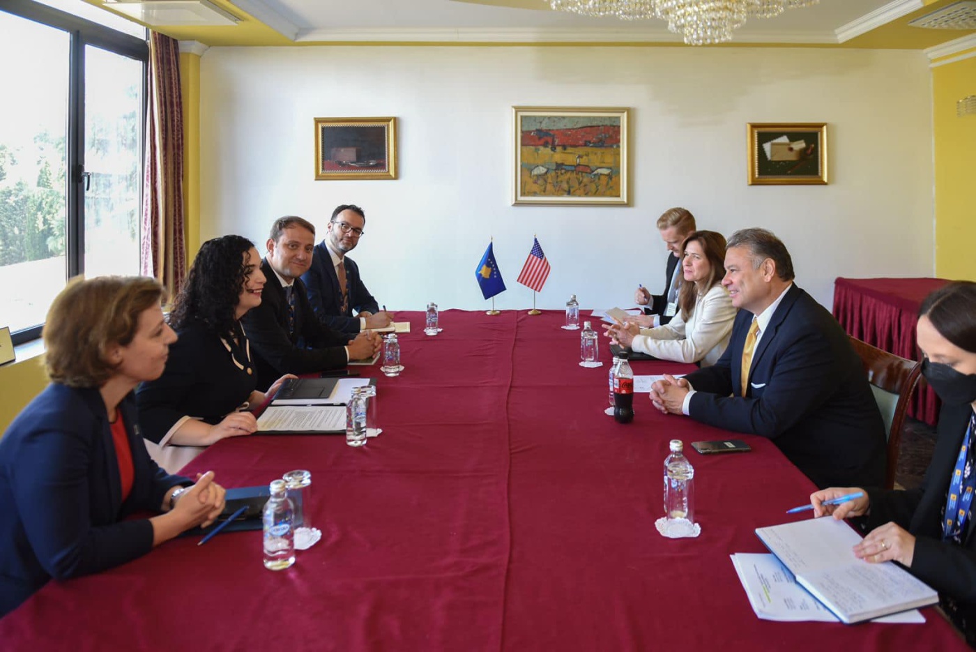 Presidentja, Vjosa Osmani, në takime të ndara ka folur me të dërguarin e posaçëm të Shteteve të Bashkuara, Gabriel Escobar, të dërguarin e posaçëm të Mbretërisë së Bashkuar, Stuart Peach si dhe me të dërguarin e posaçëm të Gjermanisë, Manuel Sarrazin.