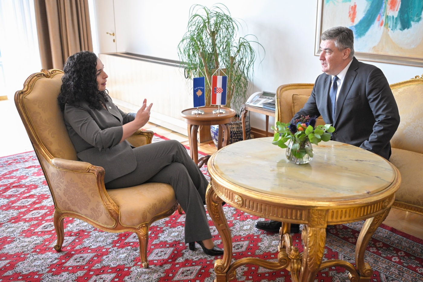 “President Milanović, faleminderit për mikpritjen dhe mbështetjen ndaj Kosovës”, shkruan Presidentja./Arbresh.info/