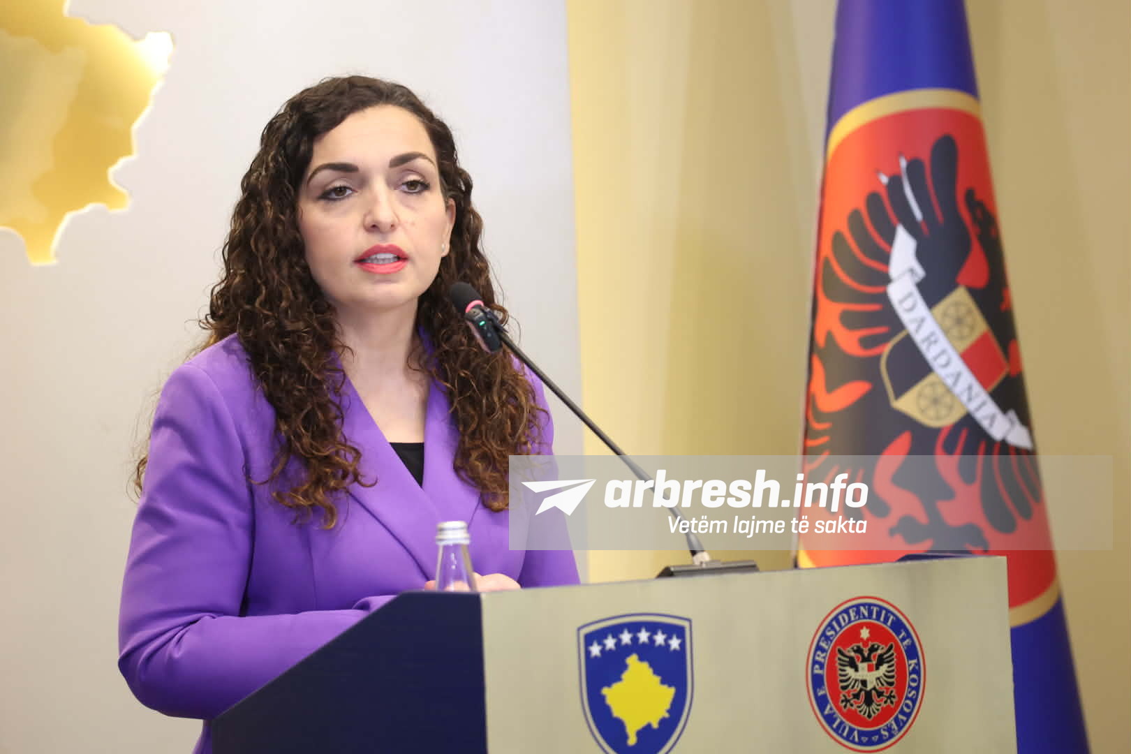 Pas takimit me liderët e partive politike lidhur me caktimin e datës së zgjedhjeve të jashtëzakonshme parlamentare, presidentja Vjosa Osmani po mban një konferencë për media.