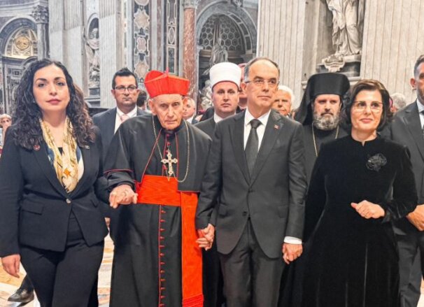 “Sot, në bazilikën “Shën Pjetri” në Vatikan, së bashku me Presidentin Begaj, kardinalin e vetëm shqiptar, Ernest Simonin dhe delegacionet tona, bëmë homazhe për Shenjtërinë e Tij, Papë Françeskun, për të shprehur respektin e qytetarëve tanë ndaj përkushtimit të tij frymëzues për paqe, harmoni dhe dinjitet njerëzor në mbarë botën”, u shpreh Osmani.