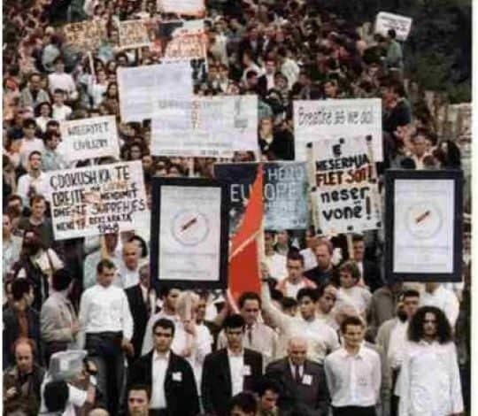 “Protestat studentore të vitit 1997, ishin lajmëtari i lirisë, nga të cilat secili hap shndërrohej në akt heroizmi dhe secila thirrje për drejtësi bëhej kushtrim për liri e pavarësi”, shkroi Osmani.