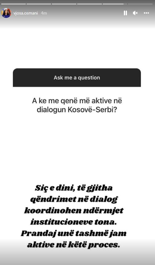 Ndër pyetjet të cilat iu bënë Osmanit, ishte edhe njëra që lidhej me dialogun Kosovë-Serbi.