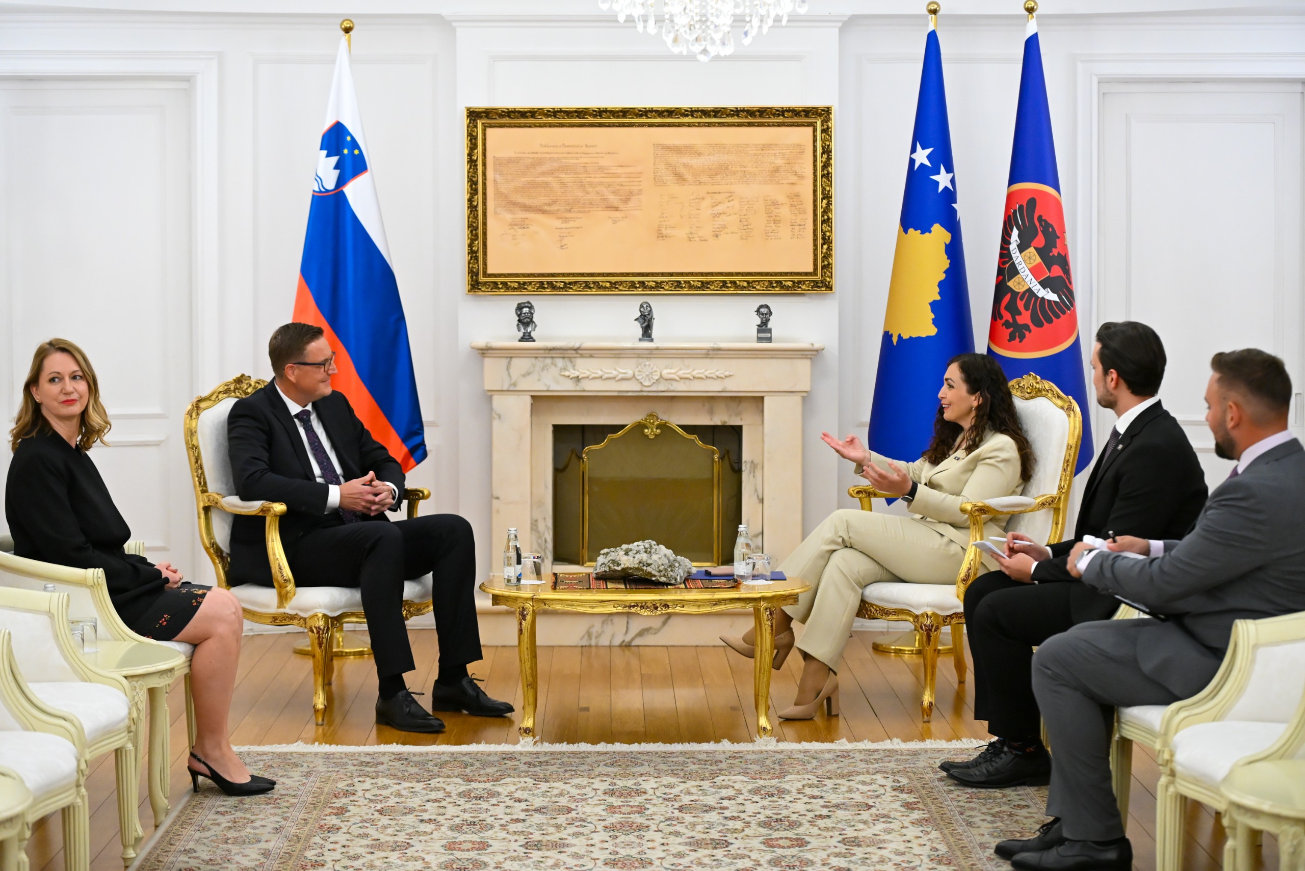 Presidentja Osmani vuri në pah marrëdhëniet e shkëlqyera bilaterale mes Kosovës dhe Sllovenisë, të ndërtuara mbi vlera të përbashkëta, respekt të ndërsjellë dhe mbështetje reciproke. Në këtë kontekst, Presidentja Osmani falënderoi Slloveninë për përkrahjen e vazhdueshme, mbështetjen në rrugën euroatlantike dhe anëtarësimin në organizata ndërkombëtare.