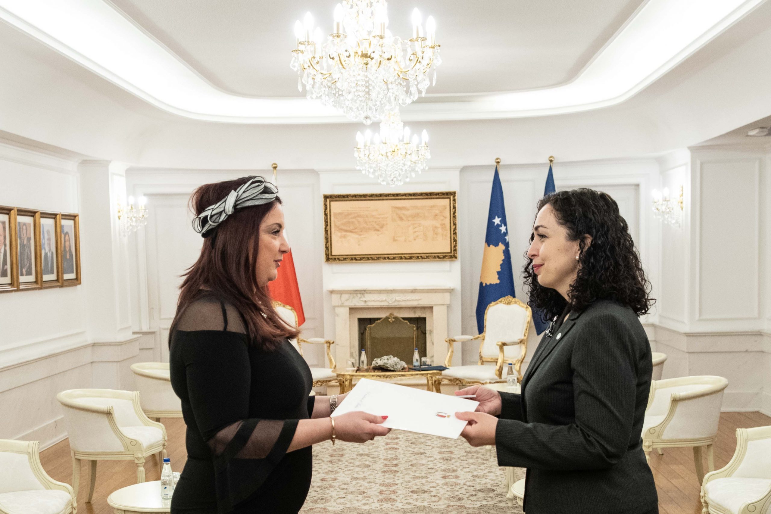 Presidentja e Republikës së Kosovës, Vjosa Osmani, sot ka pranuar letrat kredenciale nga ambasadorja e Maltës në Kosovë, Juliana Scerri Ferrante.