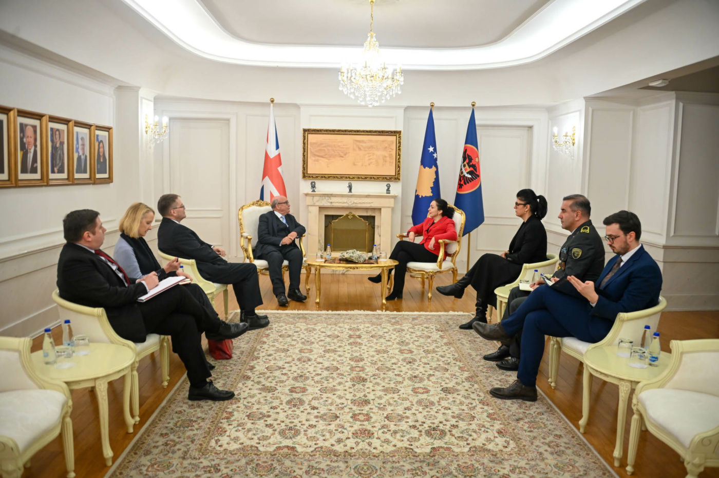 Presidentja e Kosovës, Vjosa Osmani, ka pritur sot në takim të dërguarin e posaçëm të Mbretërisë së Bashkuar për Ballkanin Perëndimor, Lordin Stuart Peach, me të cilin ka diskutuar për zhvillimet e fundit në vend dhe rajon, sfidat e sigurisë në rajon si dhe për dialogun Kosovë-Serbi.