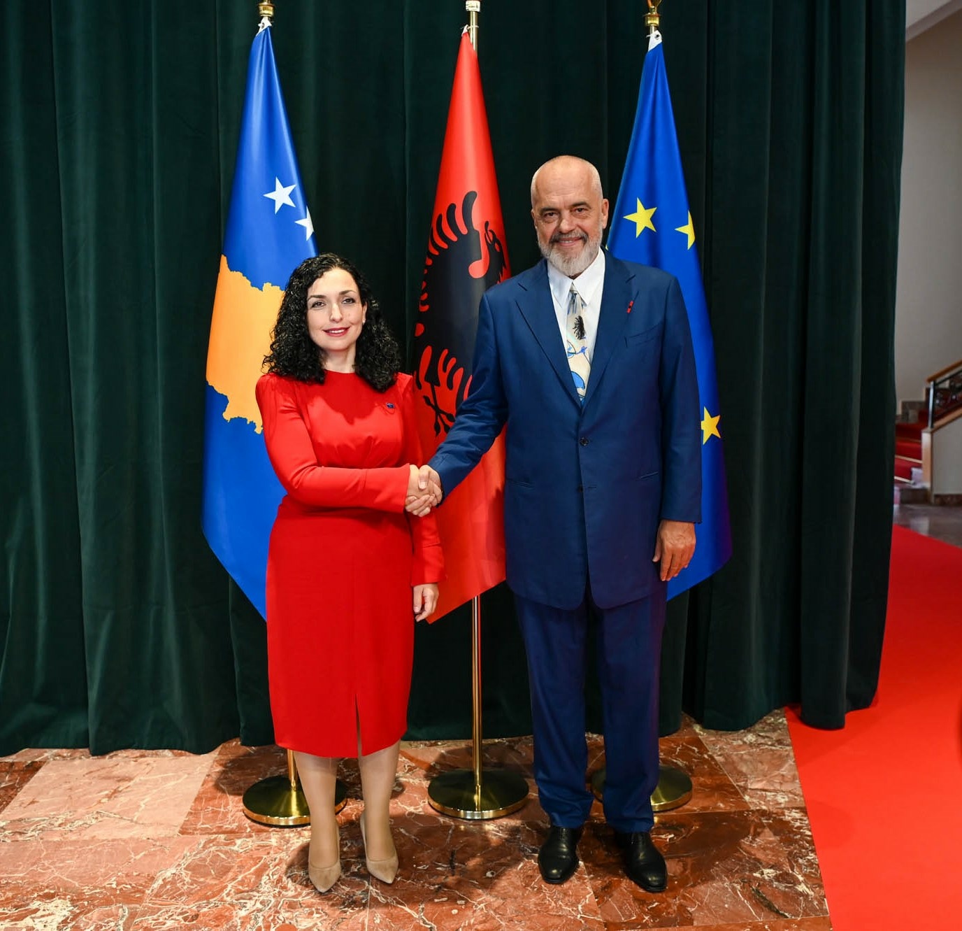 Presidentja Osmani dhe kryeministri Rama shprehën optimizmin e tyre për të ardhmen e marrëdhënieve Kosovë-Shqipëri dhe vunë theksin në potencialin për rritje të bashkëpunimit në fusha të ndryshme të interesit të dyanshëm./Arbresh.info/