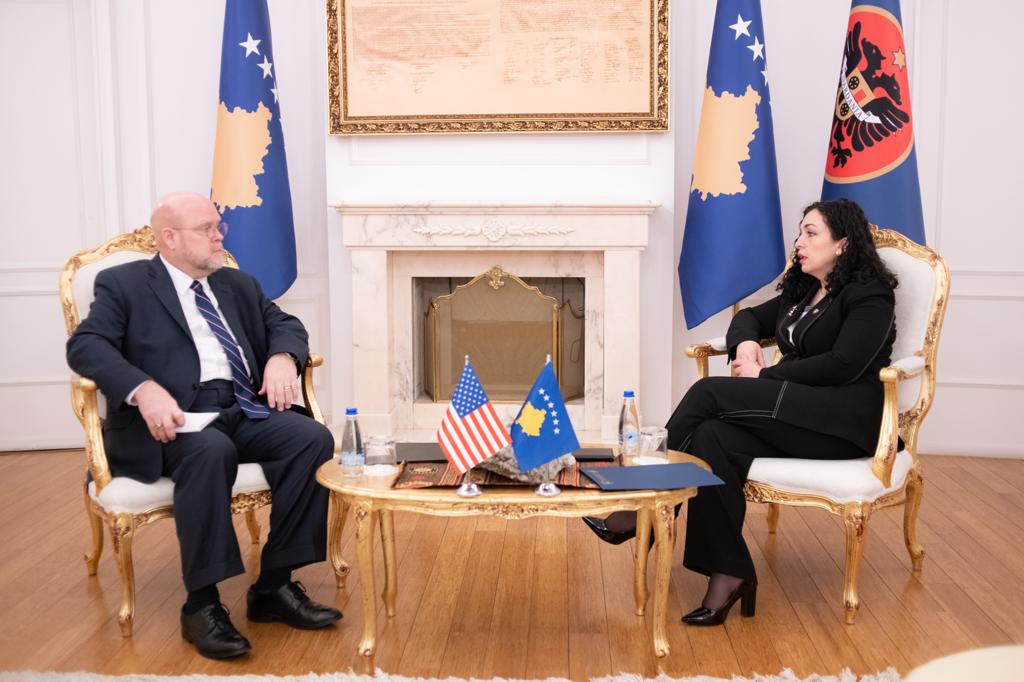 Presidentja e Republikës së Kosovës, Vjosa Osmani sot ka pritur në takim të rregullt ambasadorin amerikan Jeffrey Hovenier.
