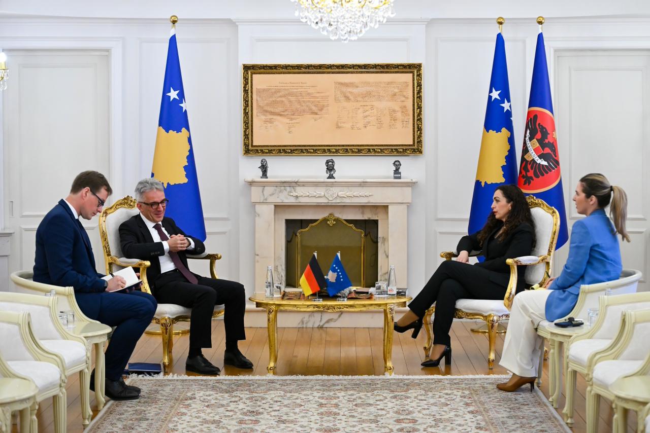Presidentja e Republikës së Kosovës, Vjosa Osmani, priti sot në takim ambasadorin e Republikës Federale të Gjermanisë në Kosovë, Rainer Rudolph.