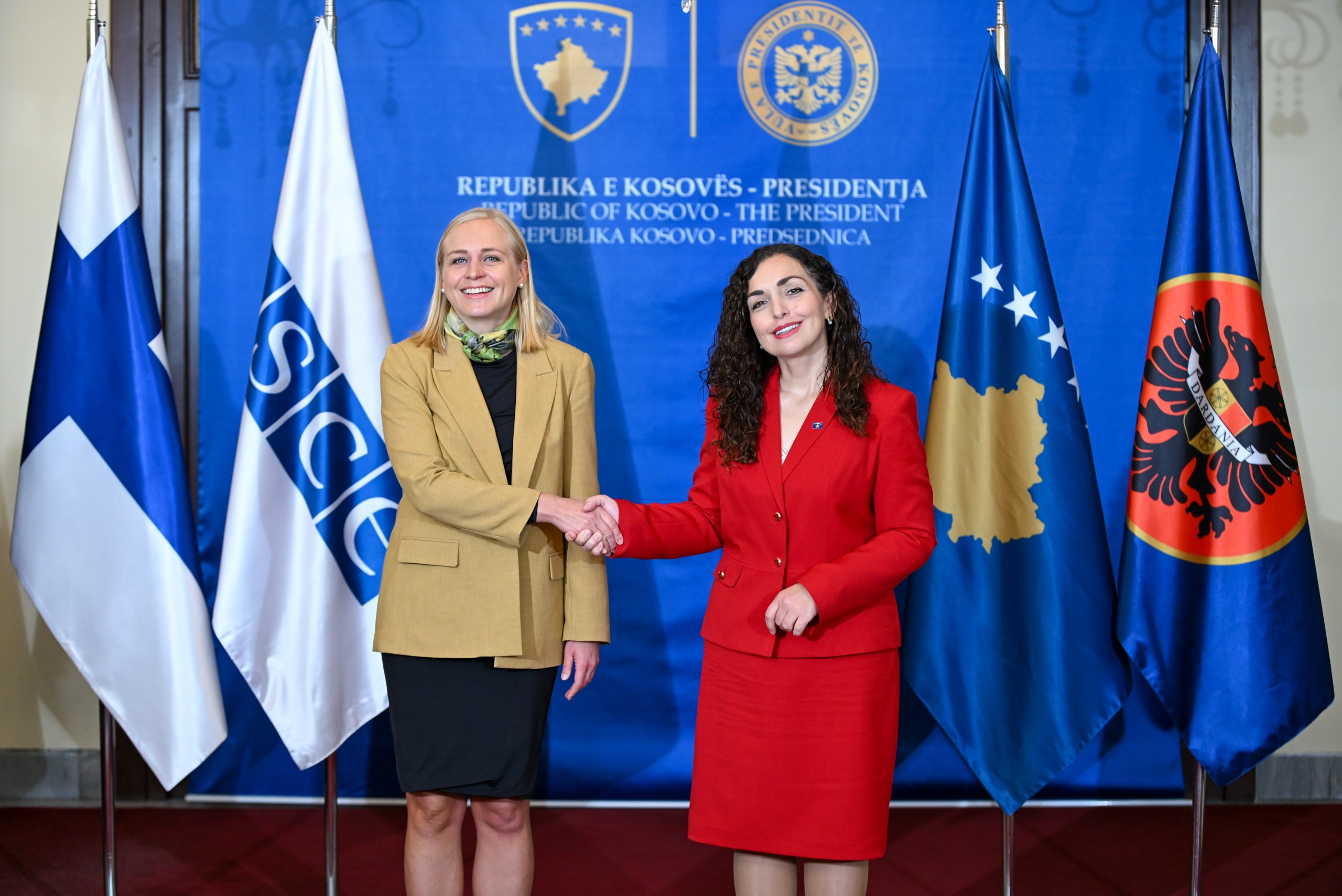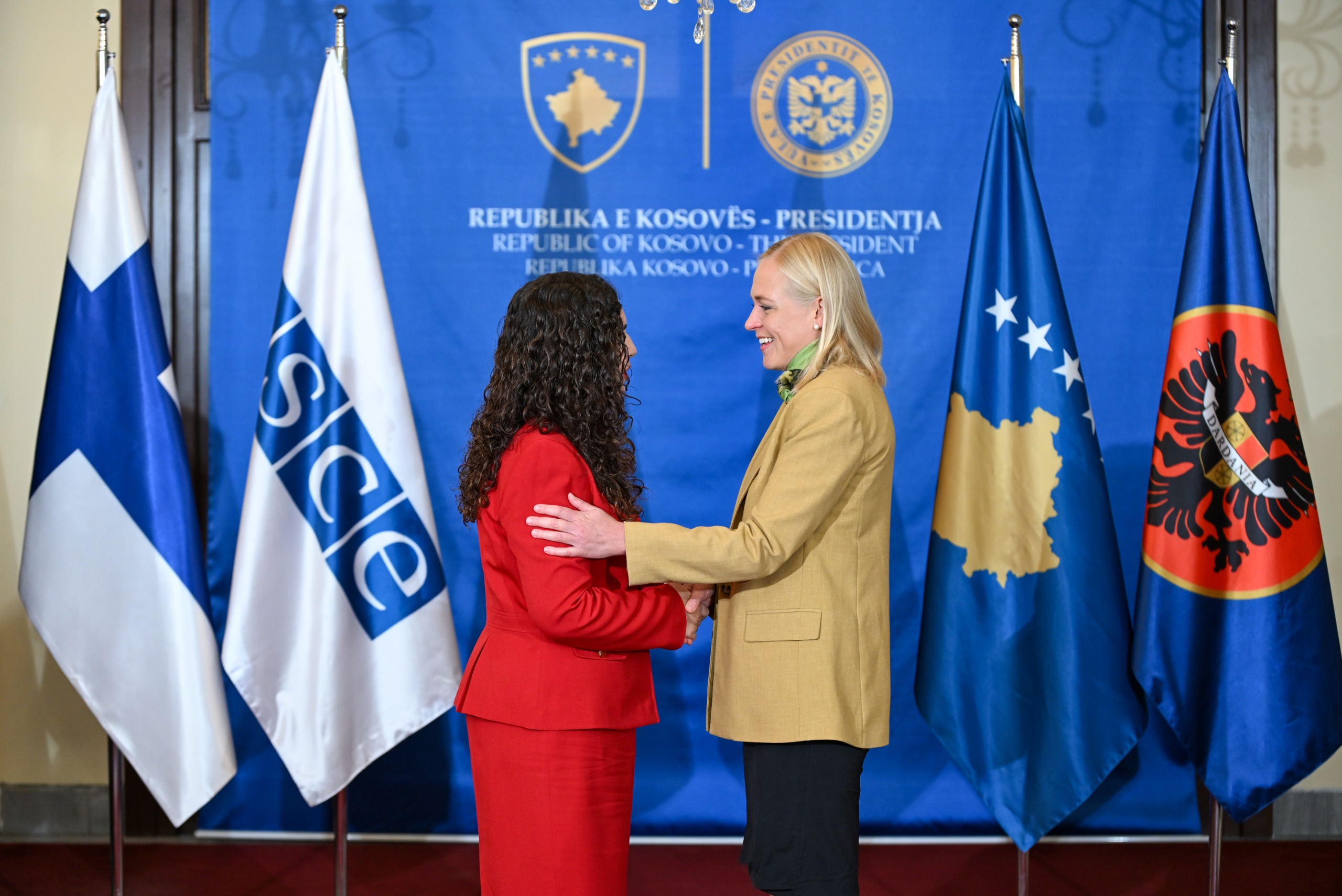 Presidentja e Republikës së Kosovës, Vjosa Osmani, priti sot në takim Ministren e Punëve të Jashtme të Finlandës, njëkohësisht Kryesuese të OSBE-së, znj. Elina Valtonen.