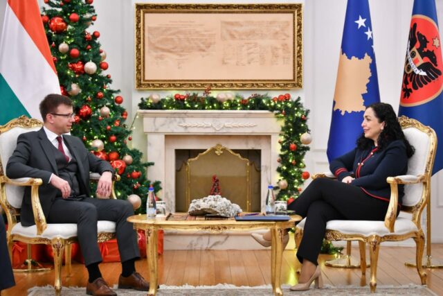 Presidentja e Republikës së Kosovës, Vjosa Osmani priti në takim ministrin hungarez për Çështjet e Bashkimit Evropian, János Bóka.