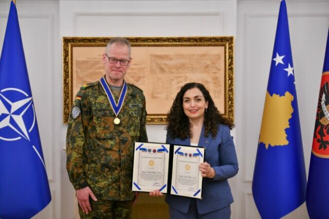 Ndërsa, për Gjeneral Brigade Dr. Sven Lange, Presidentja shprehu besimin e plotë se ai do të vazhdojë me sukses zbatimin e objektivave dhe projekteve të rëndësishme të NALT-it për avancimin e institucioneve të sigurisë së Kosovës dhe për forcimin e bashkëpunimit të ngushtë me NATO-n./Arbresh.info/