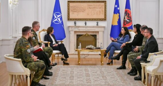 Presidentja e Kosovës, Vjosa Osmani, priti sot në takim Shefen e Operacioneve Aktuale në Selinë e NATO-s, Ariella Viehe, drejtorin në largim të NALT-it, Gjeneral Brigade Christian Nawrat dhe Drejtorin e ri, Gjeneral Brigade Dr. Sven Lange. Në takim, Osmani shprehu mirënjohjen për mbështetjen e palëkundur të NALT-it në zhvillimin dhe avancimin e Forcës së … Continue reading Osmani priti në takim Shefen e Operacioneve Aktuale në Selinë e NATO-s