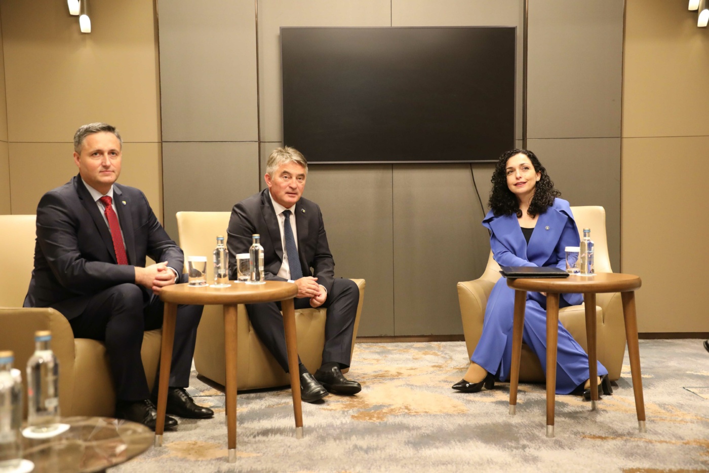 Presidentja e Kosovës, Vjosa Osmani në kuadër të takimeve bilaterale përgjatë takimit të liderëve të rajonit të Procesit Bërdo-Brijuni që po mbahet në Shkup, është takuar me anëtarët e Presidencës së Bosnje e Hercegovinës, Željko Komšić dhe Denis Bećirović.