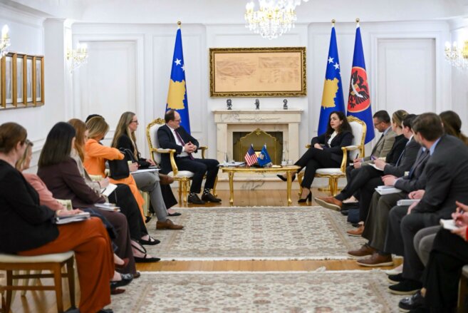 Presidentja e Republikës së Kosovës, Vjosa Osmani, ka pritur në takim një delegacion të stafit të kongresit amerikan, organizuar nga Atlantic Council, me të cilët ka diskutuar për zhvillimet e fundit në vend dhe rajon, marrëdhëniet strategjike me Shtetet e Bashkuara të Amerikës si dhe për perspektivën euroatlantike të Kosovës.