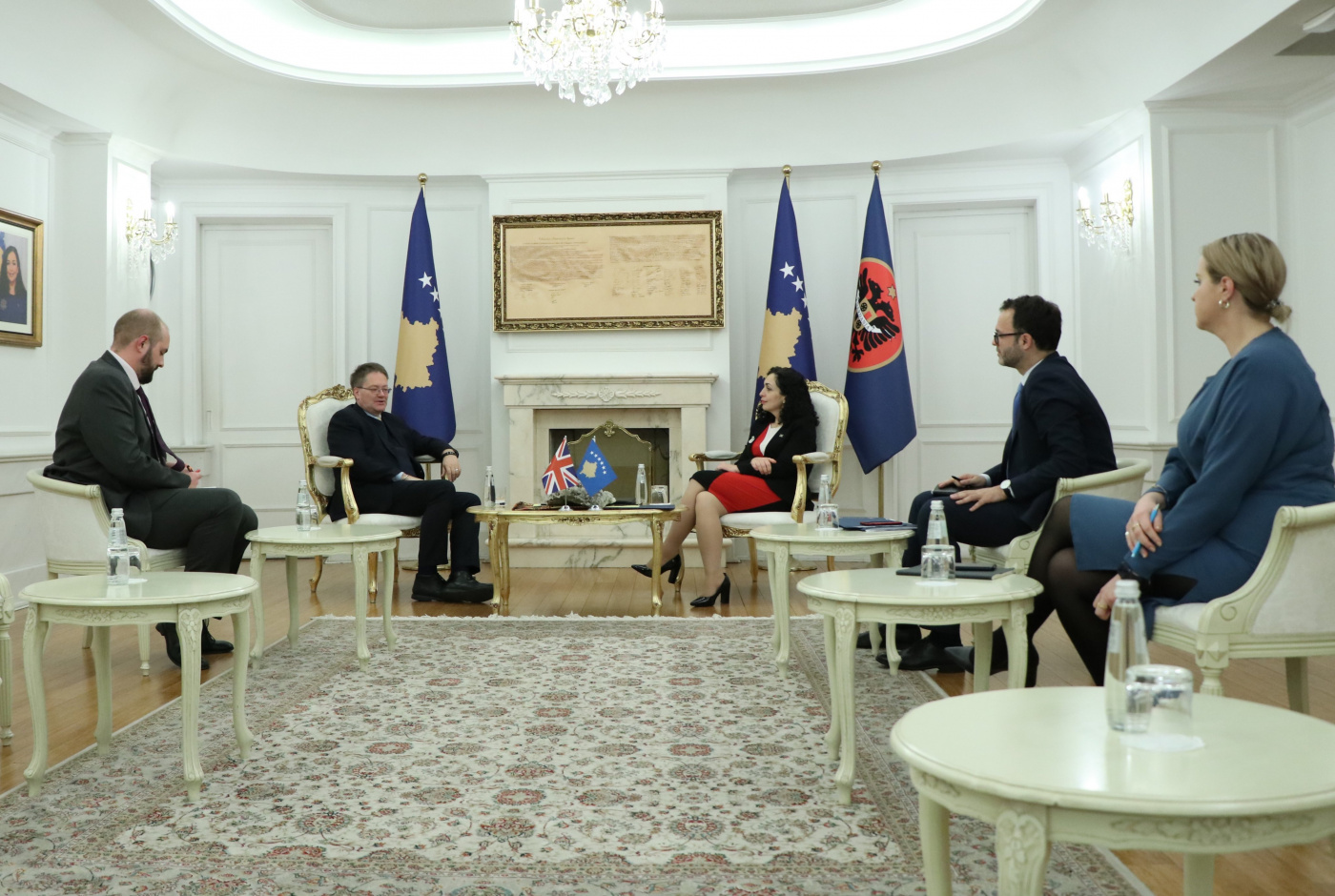 Presidentja e vendit, Vjosa Osmani ka pritur sot në takim Ambasadorin e Mbretërisë së Bashkuar, Nicholas Abbott, me të cilin diskutuan për marrëdhëniet dypalëshe dhe rajonale.