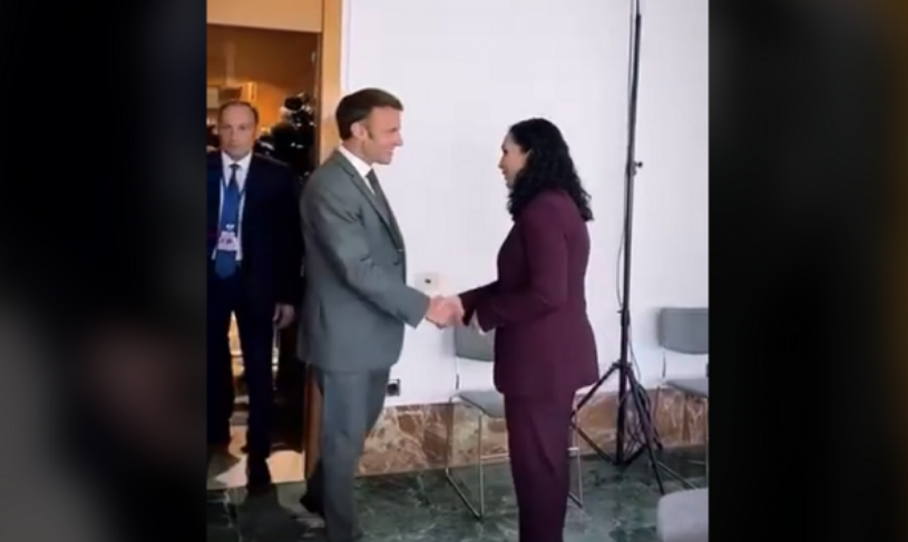 “Madame la Présidente, si jeni?”, ishte përshëndetja me të cilën iu drejtua Macron homologes kosovare.