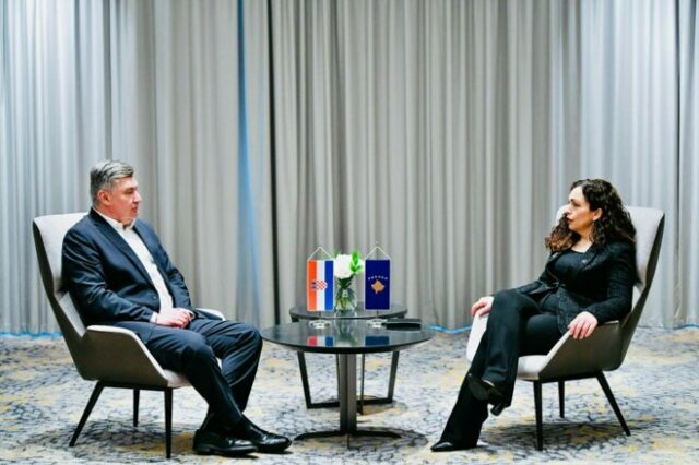 Presidentja e Kosovës, Vjosa Osmani, e cila po qëndron në Bullgari, për ta përfaqësuar Republikën e Kosovës krahas liderëve të tjerë në Takimin e nivelit të lartë të Procesit Aqaba për Ballkanin III, është takuar Presidentin e Kroacisë, Zoran Milanović.